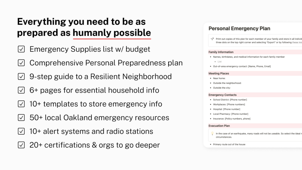 Based in Oakland, California - a city that faces unique challenges from earthquakes and wildfires to social equity issues - we understand firsthand the importance of comprehensive preparedness. Our own community has inspired us to reimagine how we approach emergency readiness, moving beyond fear-based messaging to create practical, inclusive solutions.