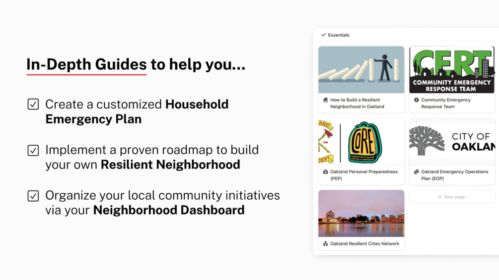 This is where The Resilient Peeps come in. By combining the best of emergency management with the best of tech nerds, we created a user-friendly, all-in-one guide to get yourself, your household, and your neighborhood prepared for any emergency. It contains templates to organize and store all the most important info, but more than that, it is full of useful resources, local numbers and organizations, and emergency operation plans, as well as guides and checklists on how to create a personal emergency plan, how to implement a proven plan to build your own resilient neighborhood, and your own neighborhood dashboard. We have different city editions, and are always adding more.